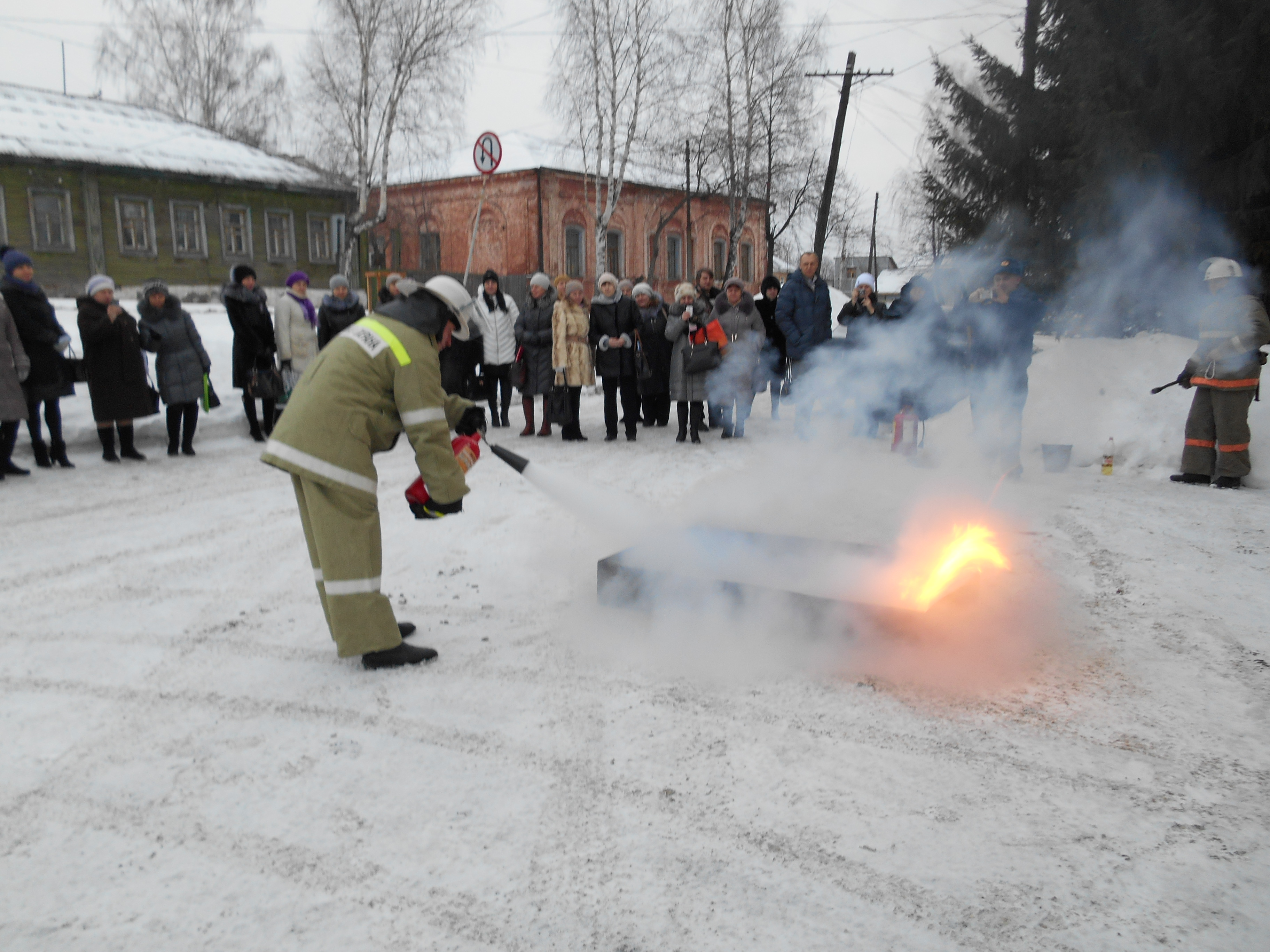 На практической части, которая проходила на площадке у здания 206 пожарной части продемонстрирован прием тушения огня при помощи порошкового и углекислотного огнетушителей. В ходе практики, которую проводил представитель добровольной пожарной дружины, преподаватели выяснили, что к огню необходимо подходить с подветренной стороны, на расстояние не ближе 1,5 метра, струю огнетушащего вещества направлять на основание пламени под углом, вдоль кромки. Так же внимание педагогов обратили на то, что тушить пожар можно только на ранней стадии его возникновения в течение не более 1-2 минут при отсутствии риска для жизни.