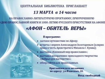 центральная библиотека приглашает 13 марта в 14 часов на православно-литературную программу, приуроченную ко дню православной