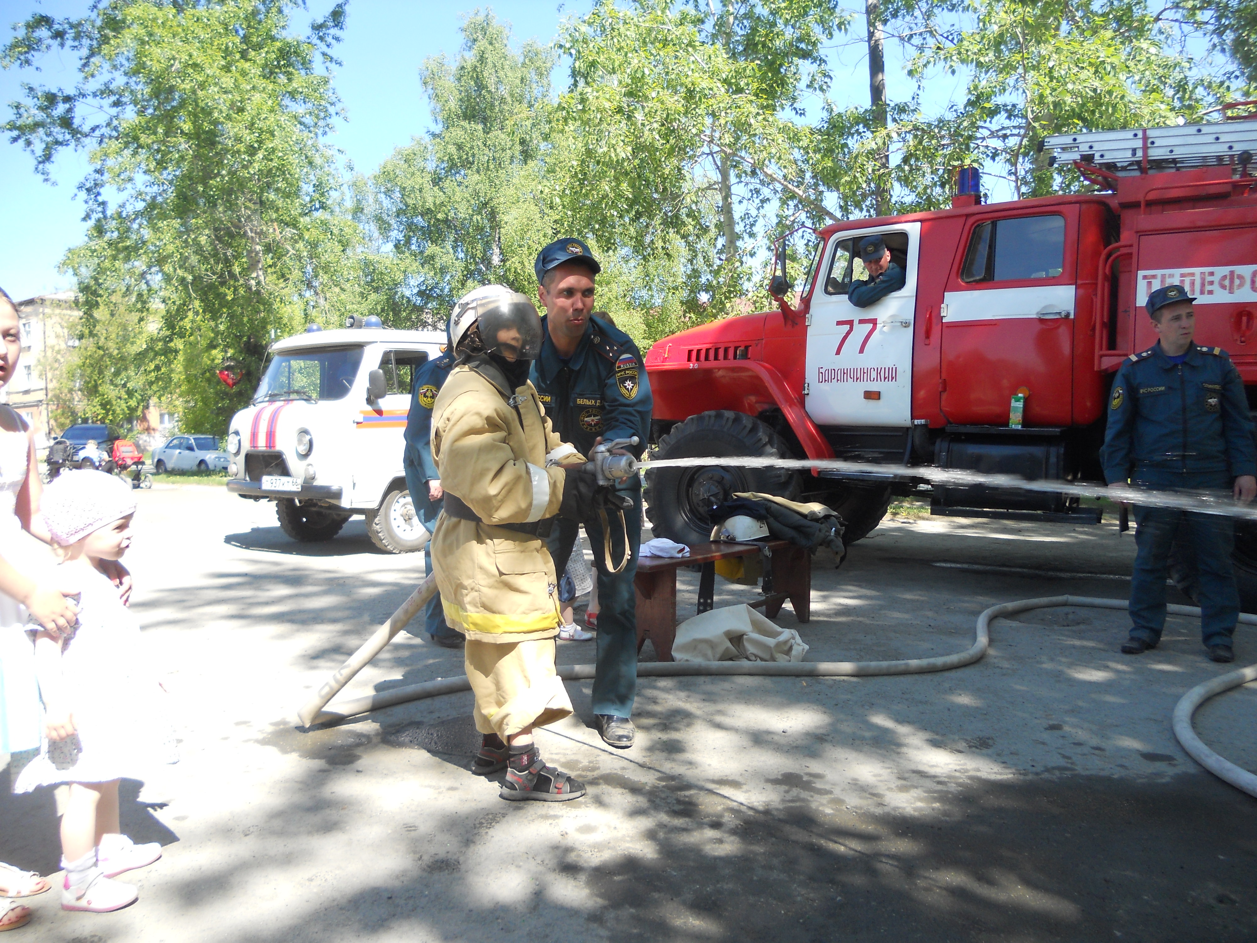 1 июня 2014 года на площади у здания администрации поселка Баранчинский звучит музыка, на праздник "День защиты детей" пришли дети вместе с родителями, бабушками и дедушками — организаторы Баранчинский дом культуры, пригласили принять участие в мероприятии специалистов 77 пожарной части ФГКУ "46 отряд ФПС по Свердловской области".