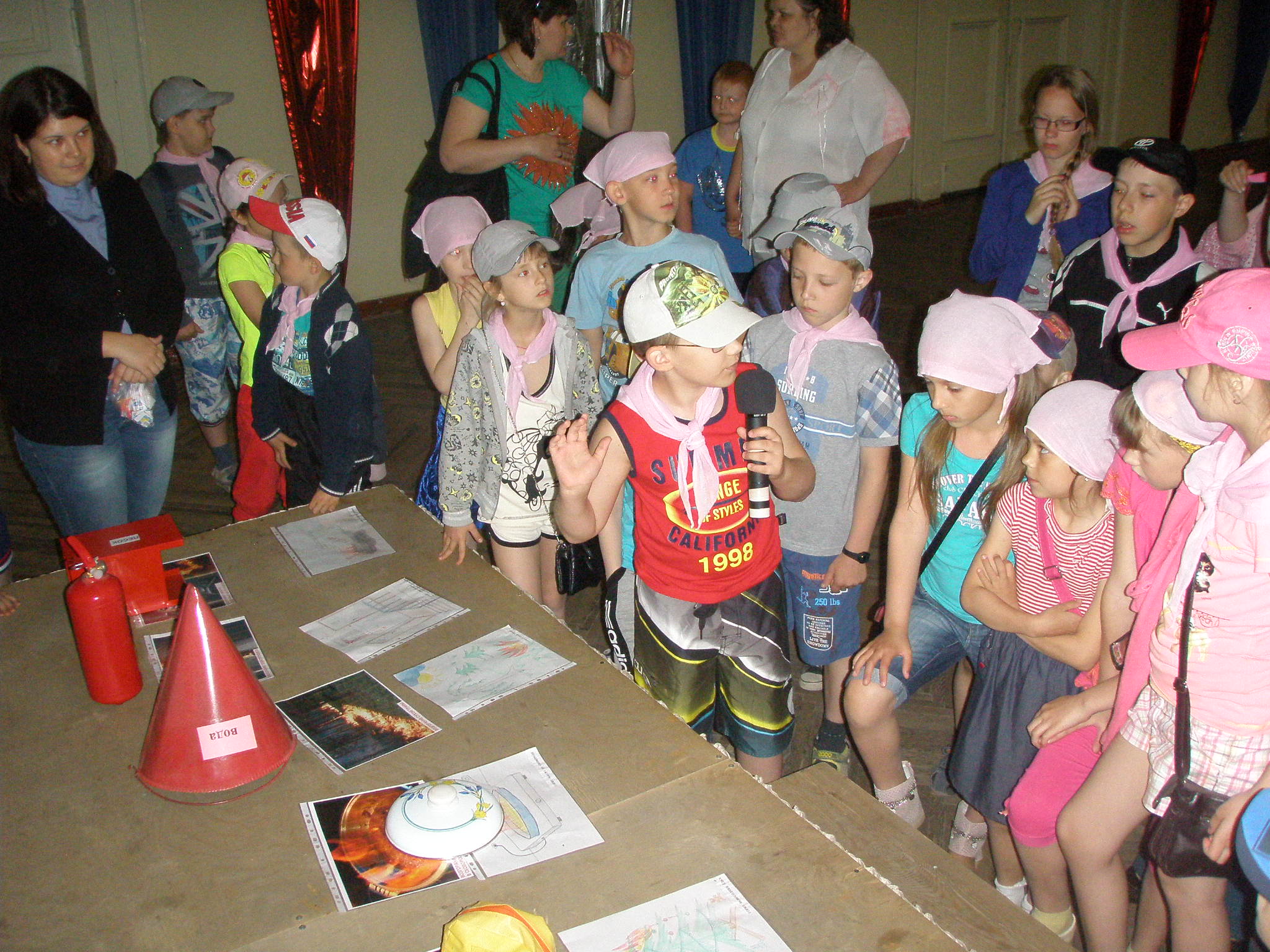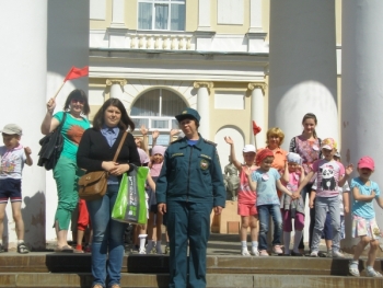 В фойе дворца ребят встречают сотрудники МЧС (ОНД Кушвинского ГО и ГО В Тура и 206 ПЧ) и Кушвинского городского отделения ВДПО, которые подготовили для них викторину "Искорка", состоящую из трех этапов.