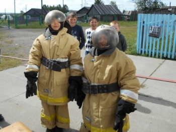 Затем все перешли на дворовую площадку, где продолжился день пожарной безопасности. Дети наперегонки надевали боевую одежду пожарного.