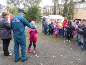 Педагоги дома детского творчества города Кушва совместно со специалистами МЧС организовали для детей игру "Пожарная каска".