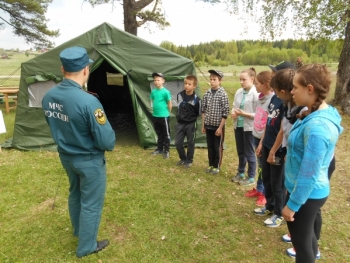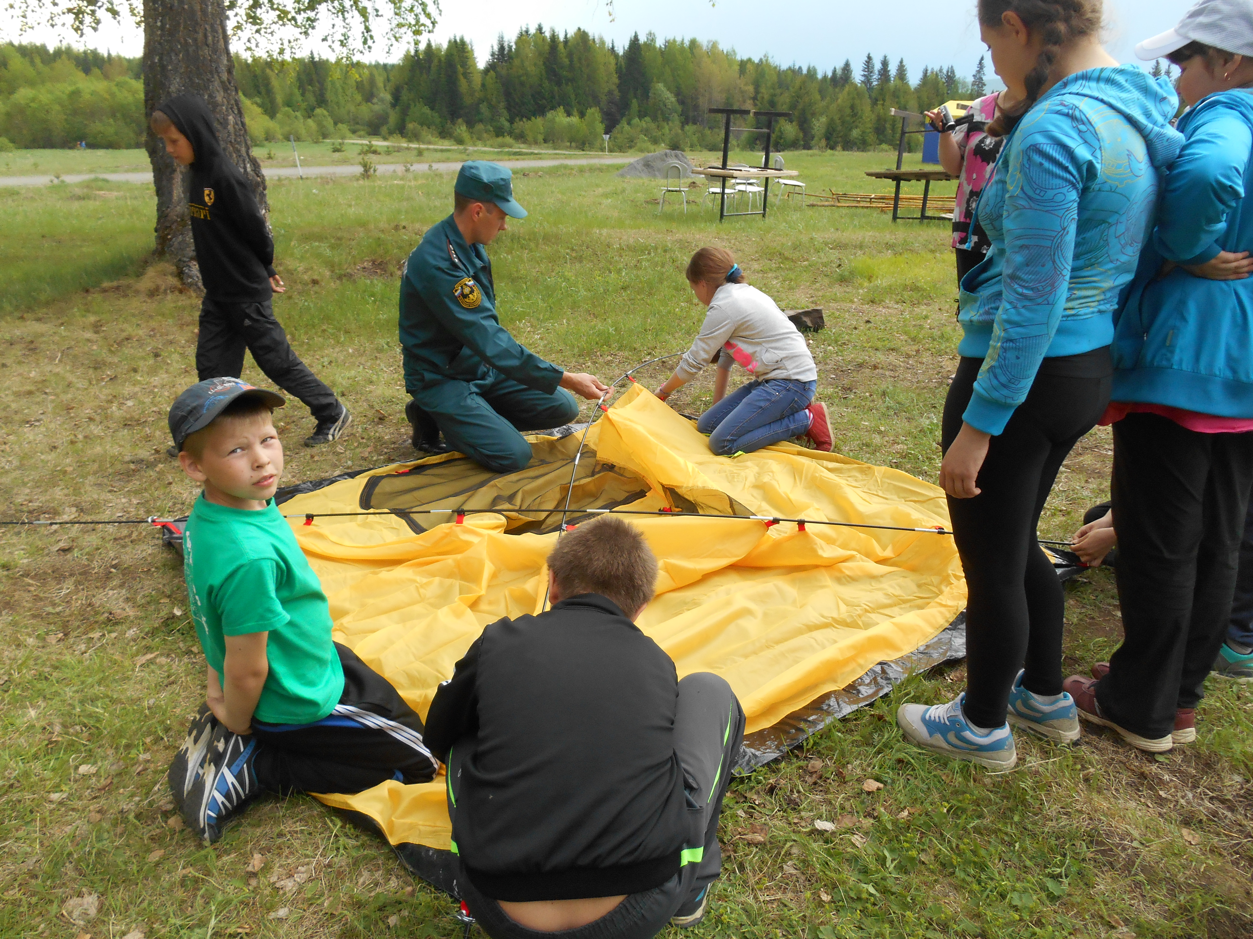 К приезду "казачат" взрослые основательно подготовились, сотрудники 77 пожарной части совместно с казаками казачьего хутора Кушвинский разбили две палатки, в которых дети будут ночевать, расставили столы для приема пищи, подготовили площадку для занятий.