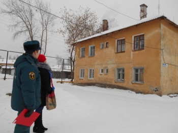 Подходя к следующему двухэтажному дому, участники рейда увидели дым из трубы, но ведь дом уже давно переведен на централизованное водяное отопление. Из беседы с жильцами выяснилось, что не все разобрали печи и некоторые ими пользуются. В первую очередь объяснили требования пожарной безопасности к эксплуатации печей: до начала отопительного сезона необходима ревизия труб и дымоходов на отсутствие щелей и трещин, обязательное наличие предтопочного листа и негорючей емкости с крышкой для удаления золы. Мужчине, который топил печь, так же напомнили, что хоть дом и оштукатурен, но перегородки и перекрытия в нем деревянные, поэтому нарушения в отоплении могут быть опасны пожаром не только ему, но и всем другим жильцам.