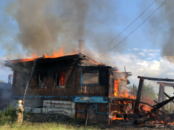 Пожарные-спасатели работали в двух направлениях, тушили горящий дом и защищали от огня рядом расположенный жилой дом. Данный район безводный, пожарных гидрантов нет, воду доставляли подвозом от пруда.