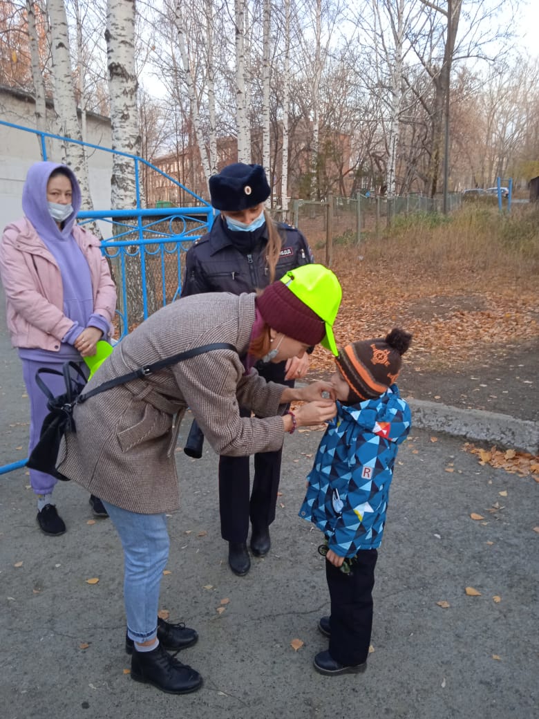 15 октября в утреннее время вблизи детского сада №32 города Кушва, представители «Родительского патруля», совместно с инспектором ГИБДД проверили у дошколят наличие световозвращающих элементов на верхней одежде малышей.