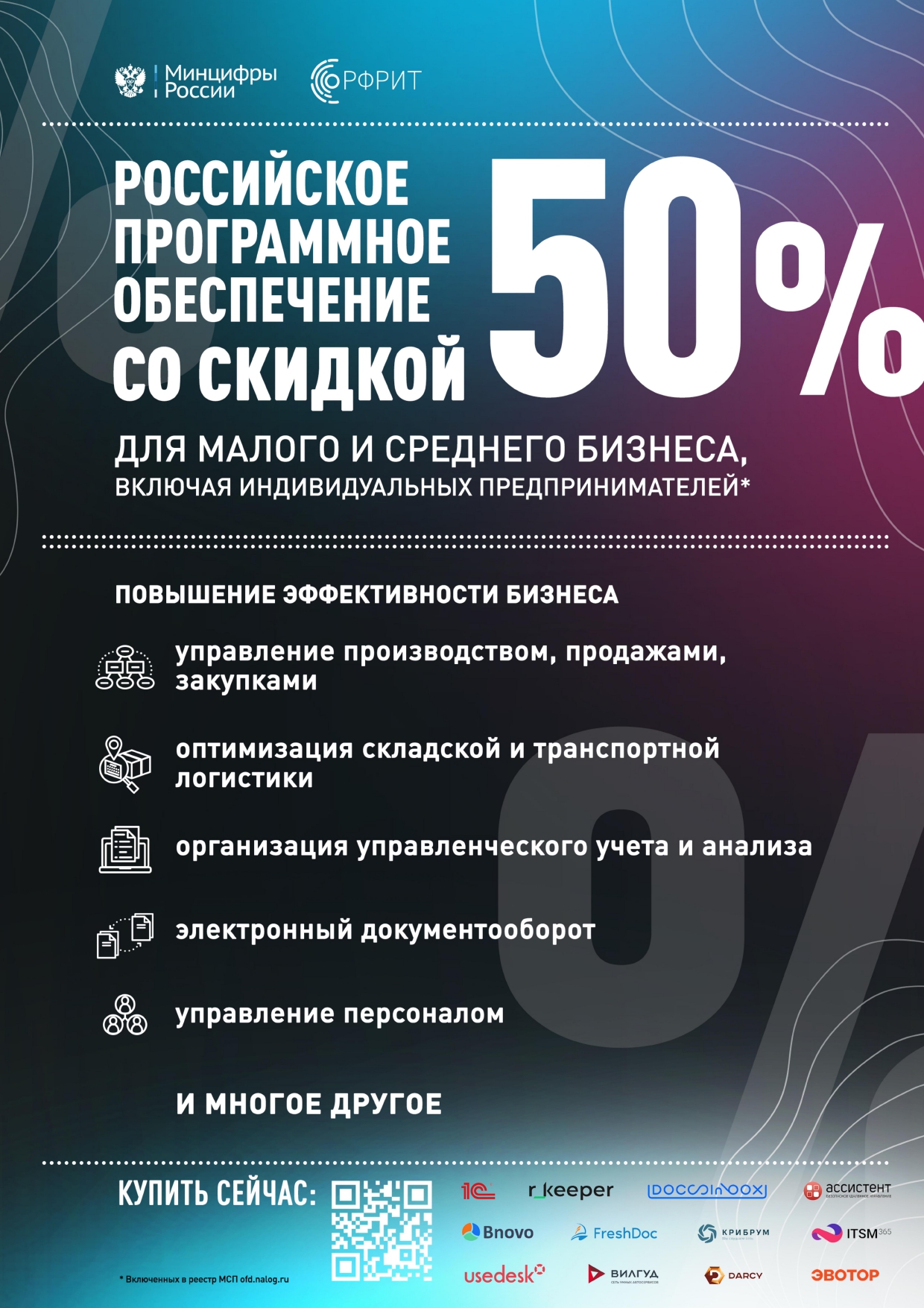 Минцифры России сообщает о запуске нового механизма поддержки малого и среднего бизнеса — компании смогут приобретать программное обеспечение вдвое дешевле за счет компенсации 50% стоимости лицензии производителям. Мера поддержки реализуется Российским фондом развития информационных технологий в рамках федерального проекта «Цифровые технологии» национальной программы «Цифровая экономика Российской Федерации». В настоящий момент проходит отбор правообладателей и программного обеспечения для целей предоставления поддержки, объявлены первые победители отбора. Узнать о программном обеспечении, доступном малому и среднему бизнесу по льготной цене можно на официальном сайте Российского фонда развития информационных технологий в сети «Интернет». «Новая мера поддержки направлена на повышение эффективности малых и средних компаний в результате цифровизации, внедрения отечественных облачных решений. Речь идет, например, о софте, автоматизирующем бизнеспроцессы (ERP), взаимодействия с клиентами (CRM) и др. Идея простая: востребованные программные продукты будут для МСП в два раза дешевле (разница в цене компенсируется министерством разработчику за счет бюджета). От самого предпринимателя ничего дополнительно не будет требоваться, не нужно заполнять никакие формы, не будет никакой отчетности, единственное условие — находиться в реестре МСП, который ведет ФНС России (ofd.nalog.ru). На реализацию этой меры поддержки до конца 2024 года выделено 7 млрд рублей», — рассказал замглавы Минцифры России Максим Паршин. «Мера поддержки позволит тысячам предпринимателей легально использовать качественное российское программное обеспечение. Всего мы сможем предложить компаниям более 400 тысяч лицензий на облачное ПО по сниженной стоимости. Это не только стимулирует компании к переходу на отечественные ИТ-продукты, но и благодаря цифровой трансформации расширит и масштабирует их бизнес», — отметил генеральный директор РФРИТ Александр Павлов.