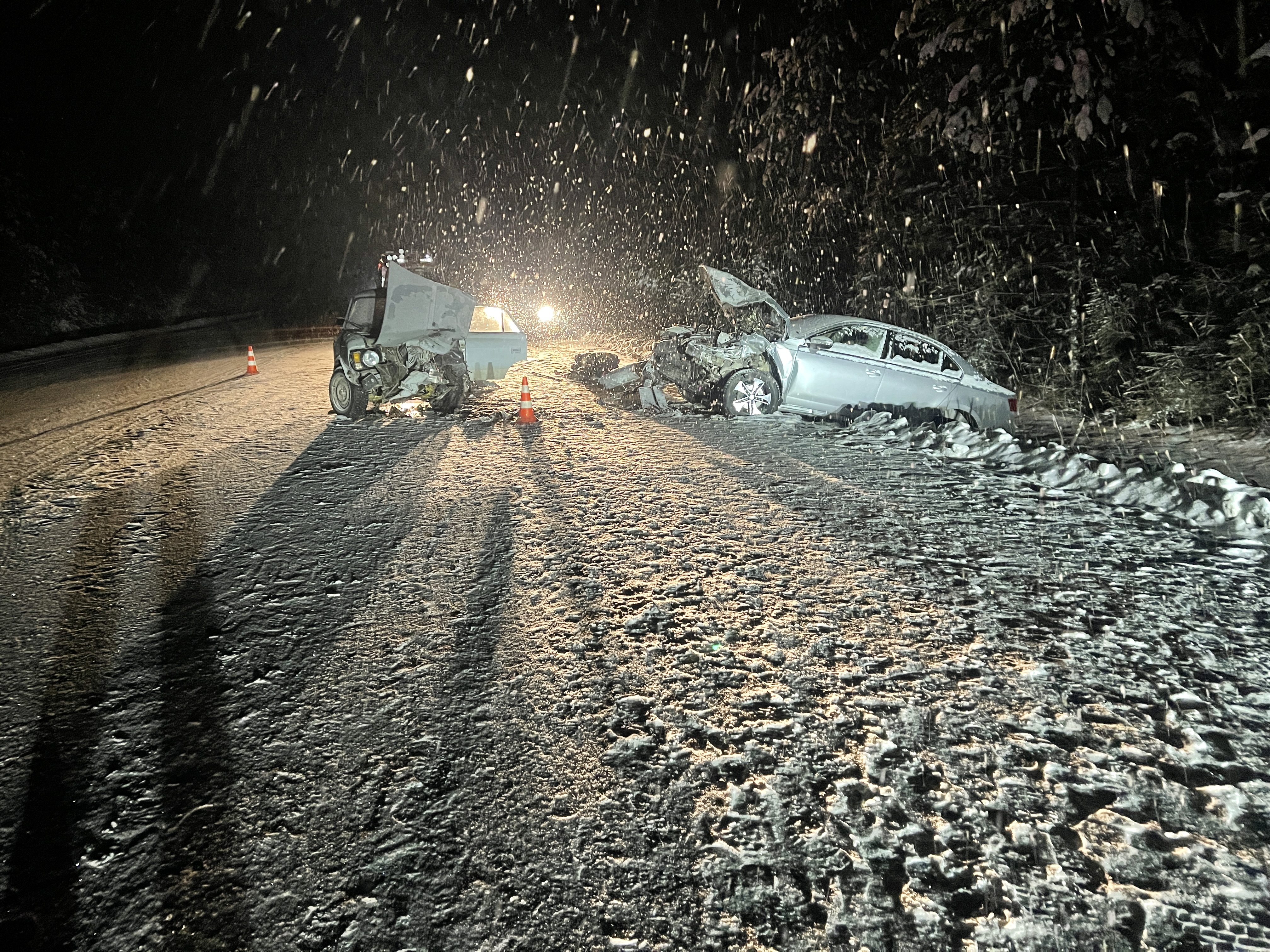 В результате ДТП водитель автомобиля «Москвич» от полученных травм скончался на месте происшествия, также в автомашине находилась собака водителя, которая погибла на месте аварии. В автомашине «Фольксваген» ехала семья из города Серов, за рулем находился глава семейства, который в ДТП не пострадал, на переднем пассажирском сиденье находилась жена водителя, в ДТП также не пострадала, двое дочерей 6-ти и 14-ти лет, находились на задних пассажирских сидениях, были пристегнуты в соответствии с требованиями ПДД, после аварии оба ребенка госпитализированы в приемный покой ЦГБ г.В-Тура, а позже доставлены в ДГБ города Нижний Тагил. Семья направлялась из города Серов, на выходные, в город Екатеринбург. Все участники данной аварии были пристегнуты ремнями безопасности.