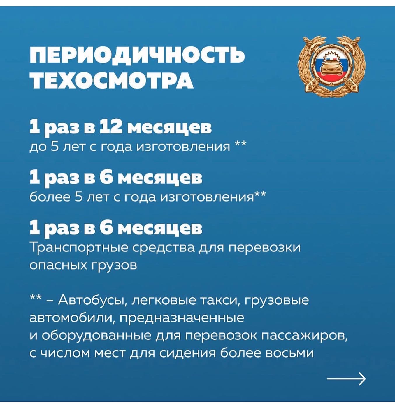В связи с запросами, поступающими от граждан, средств массовой информации и общественных организаций, Госавтоинспекция публикует разъяснения о том, каким категориям транспортных средств и с какой периодичностью необходимо проходить техосмотр, а также об ответственности за отсутствие диагностической карты.
