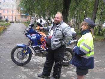 Представитель объединения мотоциклистов рассказал учащимся об особенностях управления мотоциклом, продемонстрировал защитную экипировку, спец.ботинки и мотошлем, которые должны присутствовать на водителях при управлении мотто транспортом.