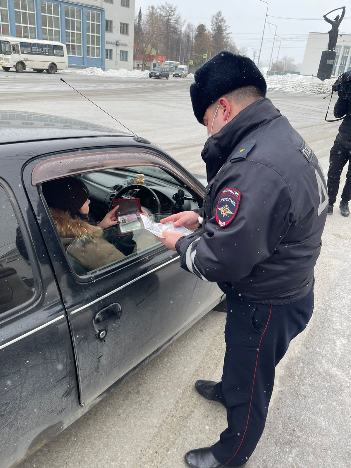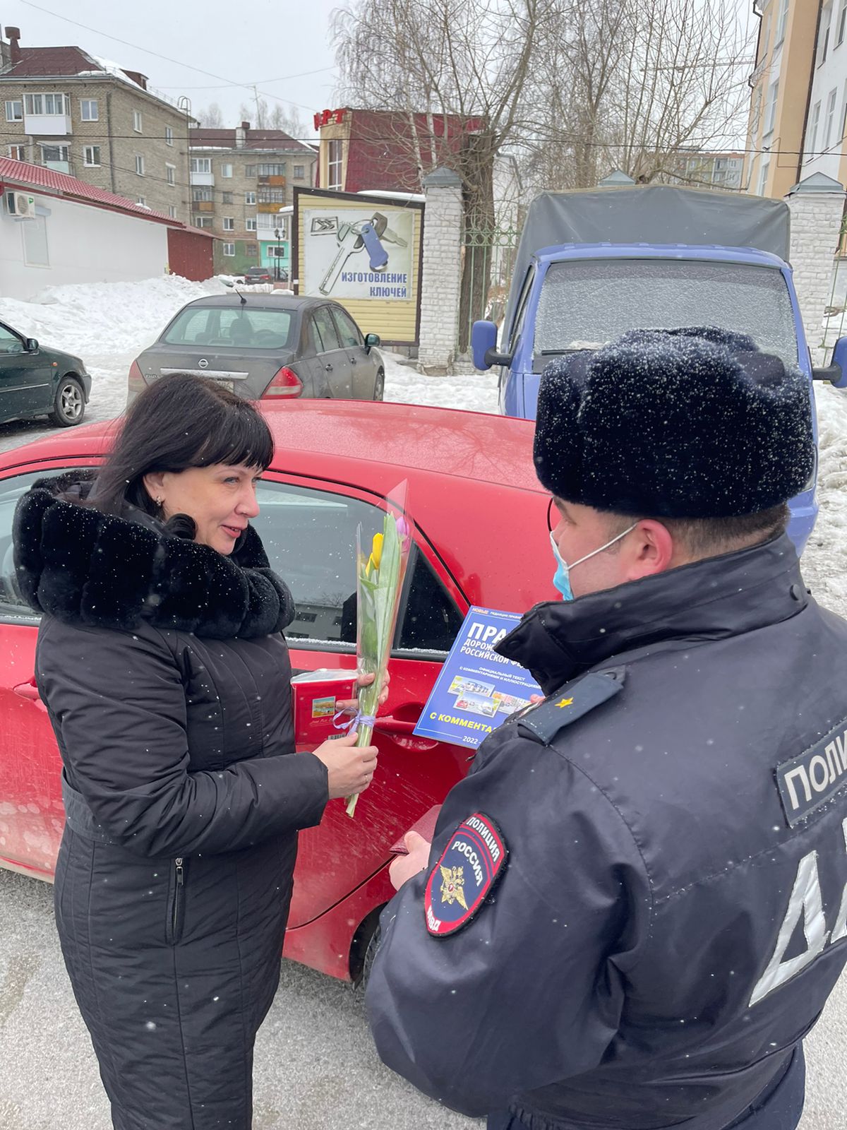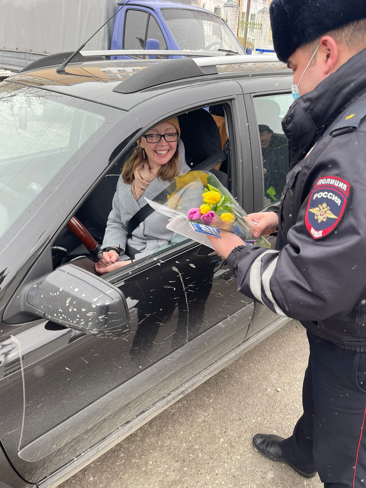 Автолюбительницы от неожиданного сюрприз, не смотря на хмурую погоду, не могли скрыть радостных улыбок и в ответ выразили автоинспекторам слова благодарности и подаренное праздничное настроение..jpg)