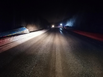 На данном участке автодороги были выявлены неудовлетворительные дорожные условия в виде: наличие зимней скользкости в виде стекловидного льда (гололёда) на проезжей части дороги, в отношении владельца дороги ГКУ Свердловской области «Управление автомобильных дорог», сотрудниками ГИБДД вынесено предписание, акт НДУ и определение о возбуждение дела об административном правонарушении по ч.1 ст.12.34 КоАП РФ.