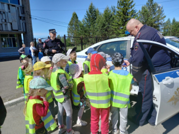 Затем вниманию малышам был представлен служебный автомобиль ДПС. Каждый желающий мог познакомиться с его оснащением, посидеть за рулем и, конечно же, сделать фотографию на память.