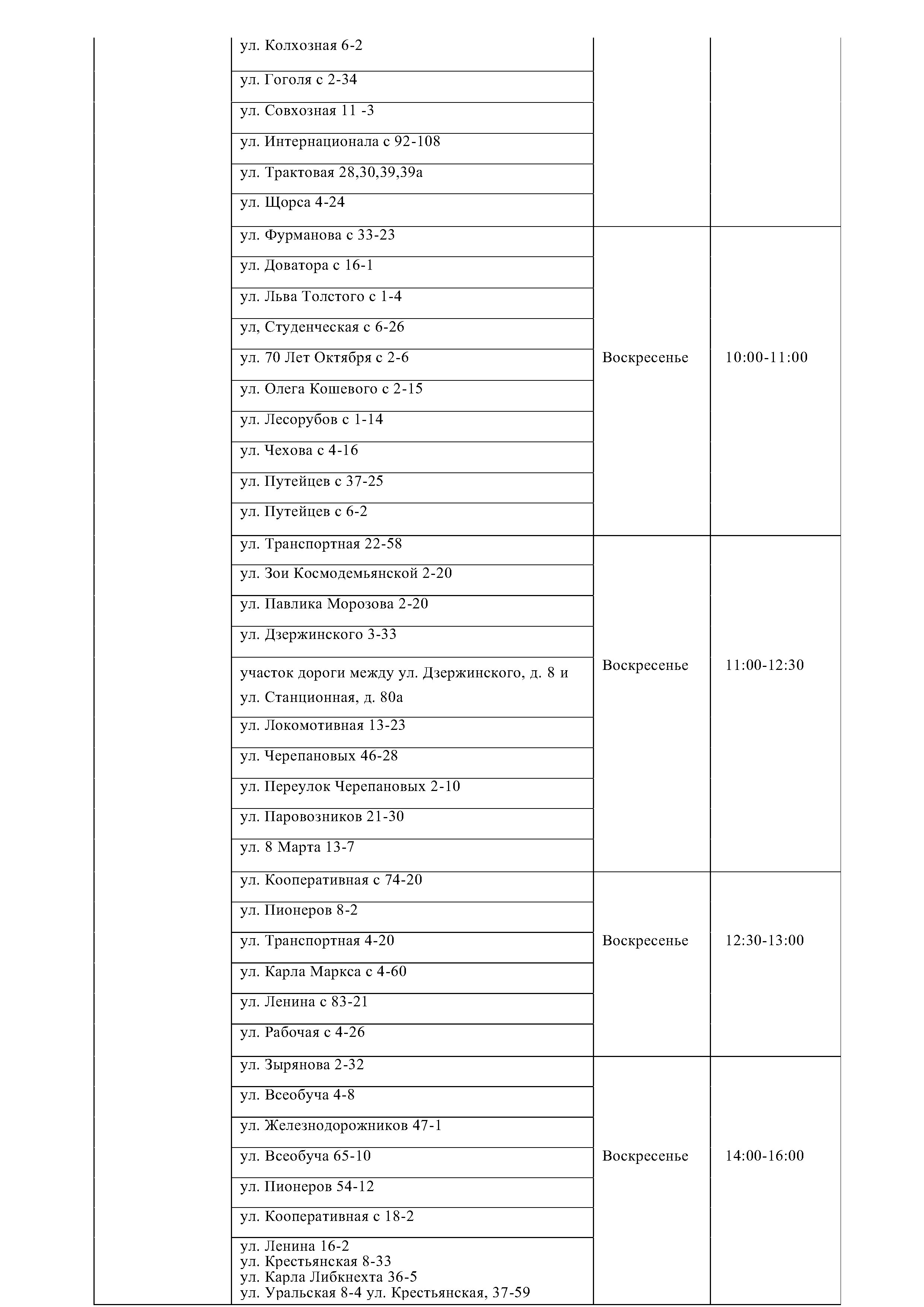 График бесконтейнерного сбора твердых коммунальных отходов на территории г. Кушва (частный сектор) по состоянию на 02.07.2022 год.