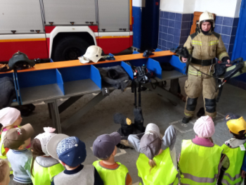 В гости к огнеборцам пришли мальчики и девочки и детского сада №32 Кушвы. Пожарный-спасатель Анисимов Никита Евгеньевич показал ребятам, как надевается боевая одежда пожарного. Каждый элемент он сопровождал сначала вопросом :