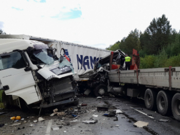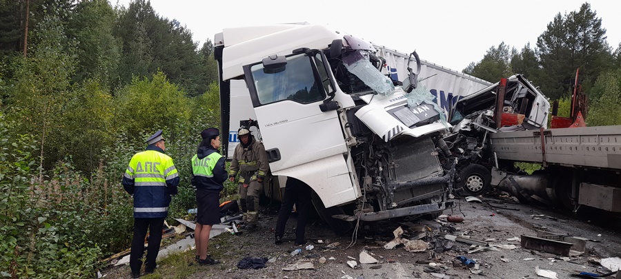 3 часов 30 минут на автодороге Верхняя Тура - Качканар в районе 2 км. + 390 м. 63 –х летний водитель автомашины, MAN с прицепом KOLUMAN двигался со стороны г. Качканар в сторону г. Екатеринбург, предположительно уснул за рулем, в результате чего совершил выезд на полосу дороги, предназначенную для встречного движения, с последующим столкновением со встречной автомашиной Рено Магнум с полуприцепом Кроне под управлением 37- летнего водителя. В результате столкновения водитель автомашины MAN погиб на месте, до прибытия бригады медиков. Бригадой ОСМП ГАУЗ СО «ЦГБ г. Верхняя Тура» в приемный покой ГАУЗ СО «ЦГБ г. Красноуральска» доставлен водитель автомашины Рено Магнум, с травмами различной степени тяжести. Водитель автомашины MAN, иностранный гражданин, ремнем безопасности не был пристегнут.