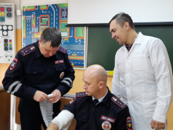 В текущем году продолжается и обучение сотрудников ГИБДД основам оказания первой доврачебной помощи пострадавшим, в том числе в результате дорожно-транспортных происшествий. В первую очередь, медицинские работники - фельдшеры, врачи, рассказывают и демонстрируют автоинспекторам порядок оказания помощи, а также какие средства из имеющихся в патрульных автомобилях медицинских укладок, применяются при получении различных травм пострадавшими. В медицинской укладке есть шины, перевязочный материал, средства для проведения экстренной сердечно-легочной реанимации, носилки.
