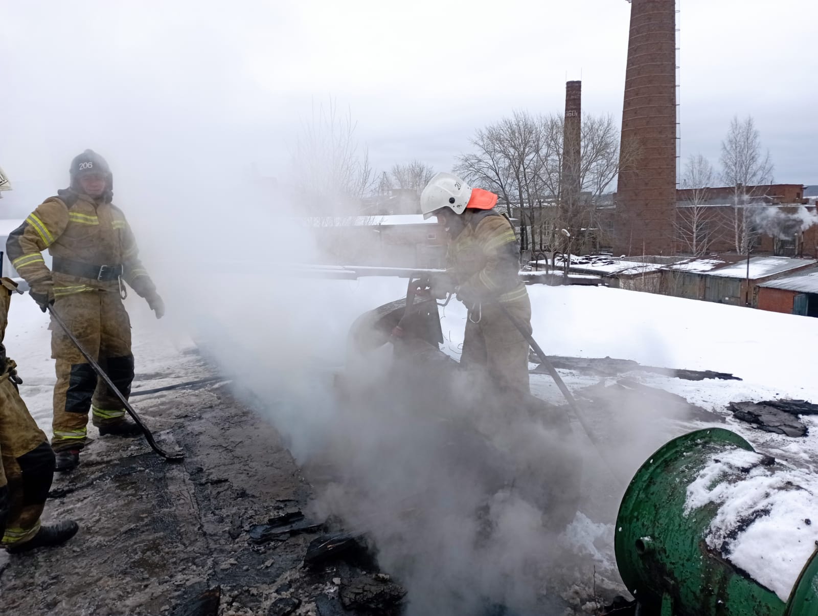 Примером подобной беспечности является пожар в производственном здании на улице Маяковского Кушвы, которой огнеборцы 206 пожарно-спасательной части ликвидировали на этой неделе. Объем помещения большой, печь топили активно, металлическая дымовая труба пересекала потолок, обшитый досками, а так как размер противопожарной разделки трубы от горючих конструкций потолка и конструкций крыши был недостаточным, произошло возгорание. Скорее всего, опасному нагреву трубы так же способствовало, то, что труба выходила на крышу под углом 90 градусов, тяга уменьшалась, температура внутри трубы увеличивалась. Результат – пожар.