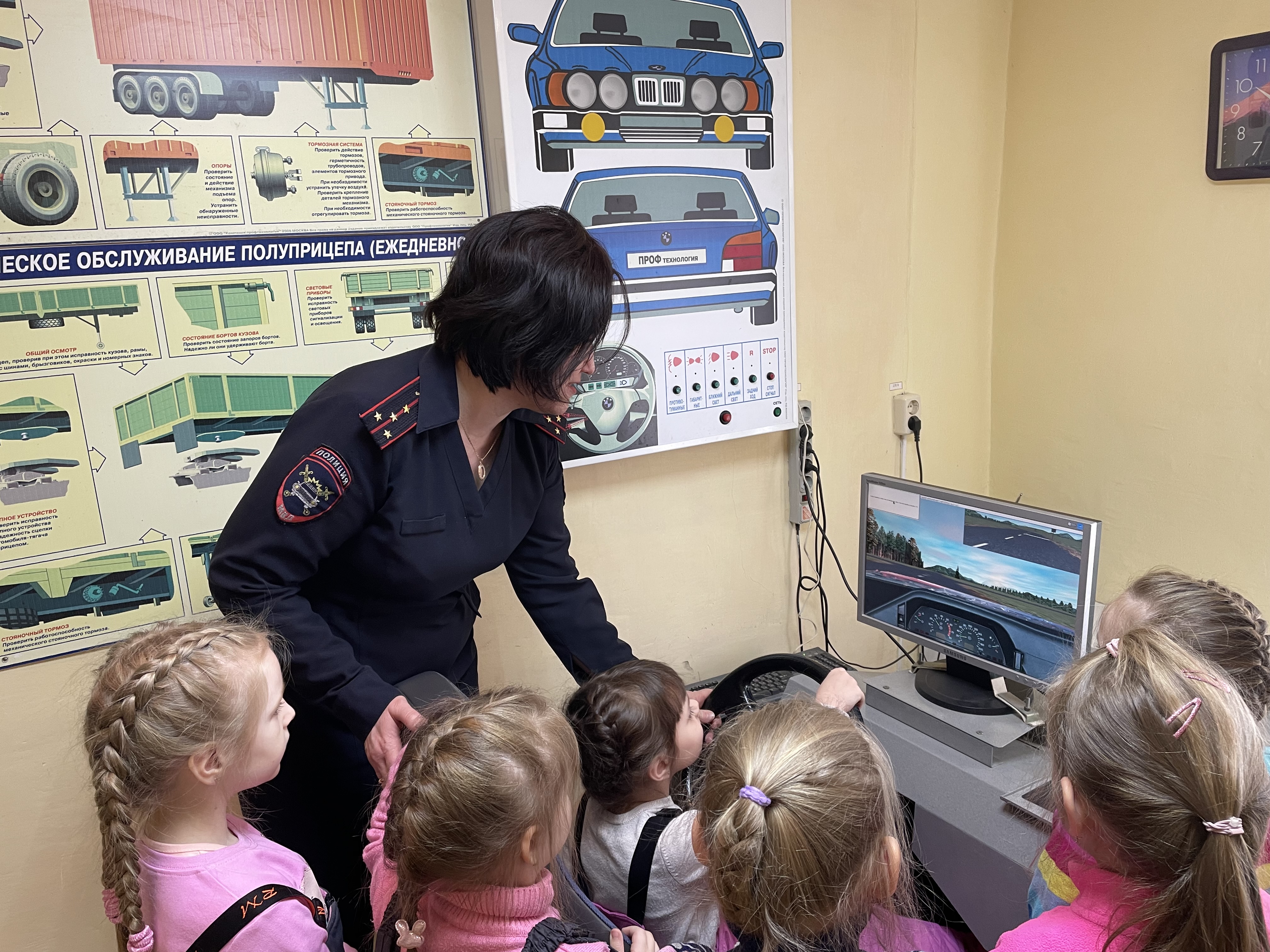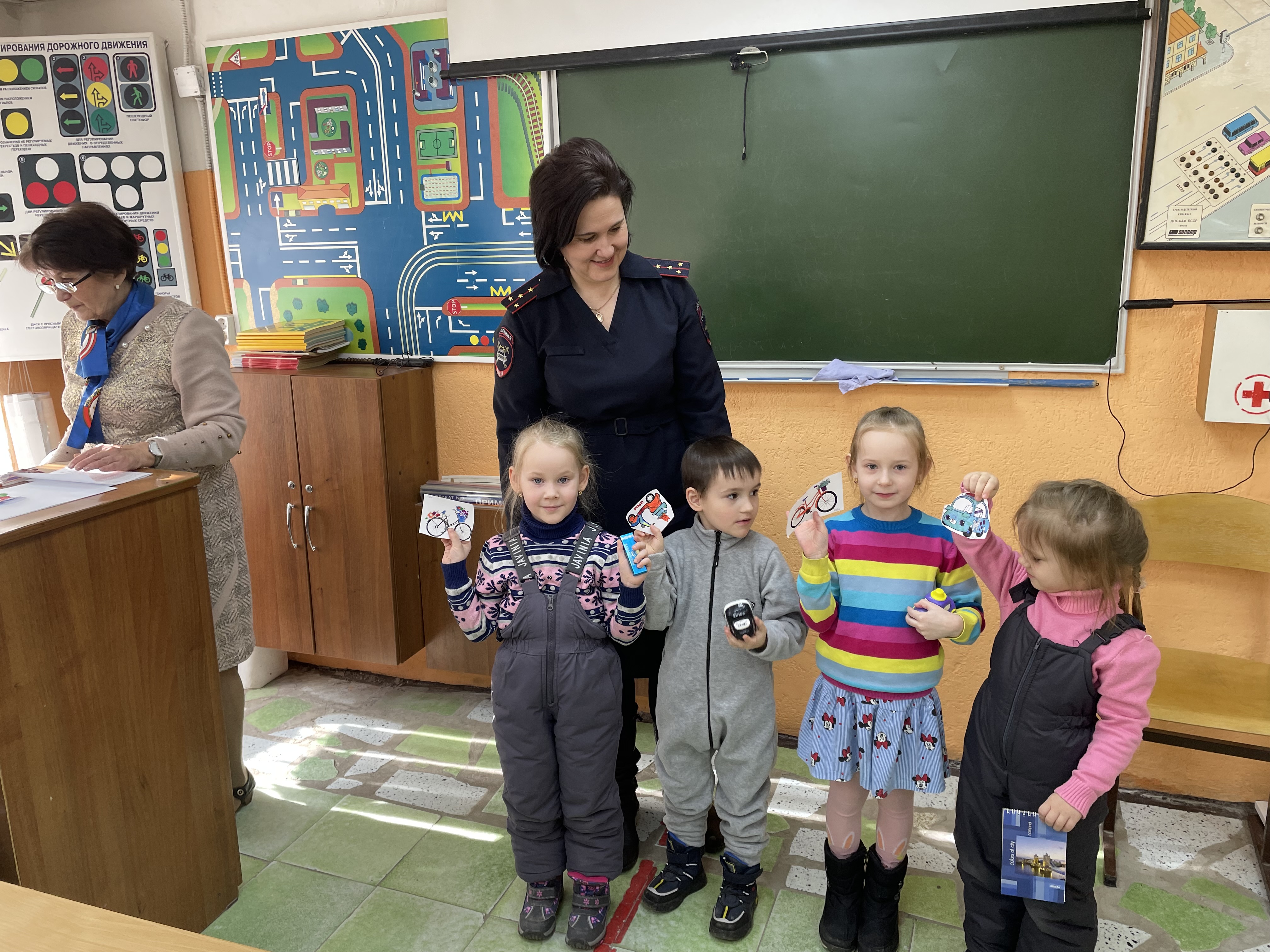 Вначале, дети познакомились с видами транспорта, с сигналами светофора, отгадывали загадки по ПДД, рисовали, и даже побывали в роли водителя автомашины. Дети признались инспектору Госавтоинспекции О. Леоненко, что быть водителем очень ответственно и пообещали соблюдать ПДД и быть примерным пешеходом.