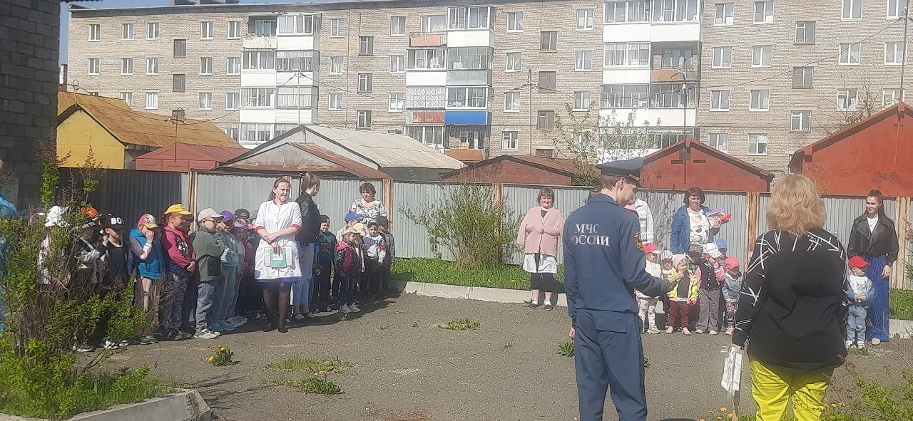 18 мая такая тренировка прошла в МАДОУ №18 поселка Баранчинский. За действиями сотрудников и работников дошкольного учреждения наблюдал начальник караула 77 пожарно-спасательной части Тимофей Ведерников.