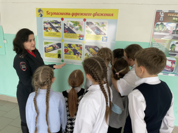 Сотрудники Госавтоинспекции напомнили школьникам основные правила безопасного поведения на дороге, повторили правила перехода проезжей части по пешеходному переходу.