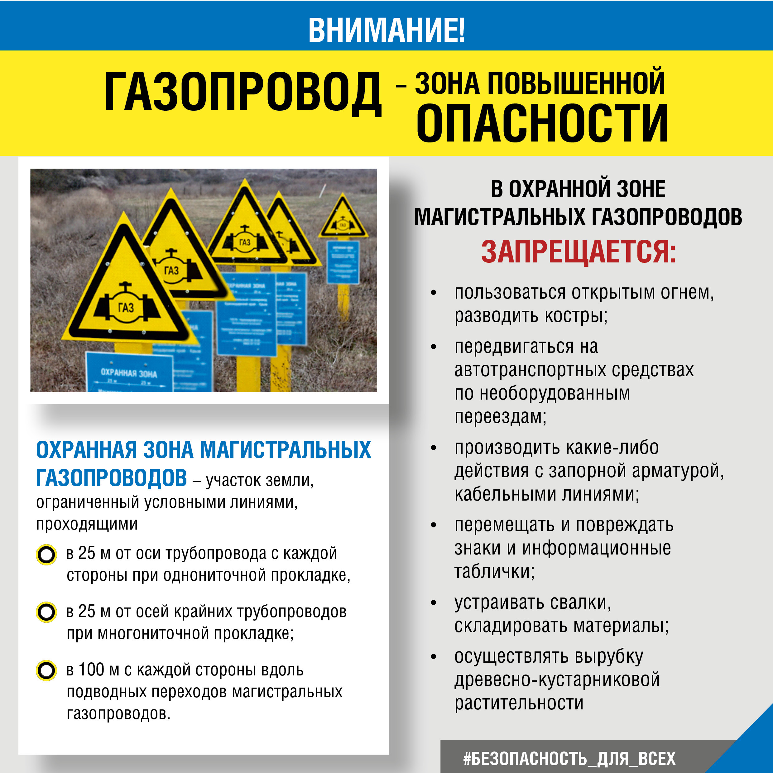 При аварии на магистральном газопроводе возможен выход природного газа с воспламенением, что может повлечь за собой материальный ущерб и человеческие жертвы. Просим граждан соблюдать меры безопасности!