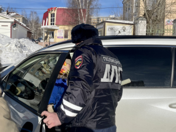 Накануне 8 марта сотрудники ГИБДД поздравили автоледи с праздником.