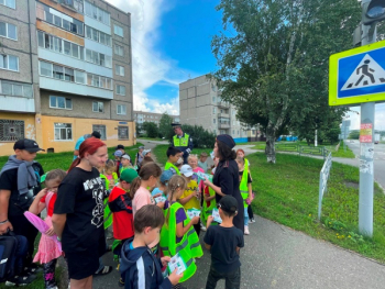 Сотрудники Госавтоинспекции провели практическое занятие «Перехожу дорогу правильно». Вблизи пешеходного перехода  сотрудники дорожно-патрульной службы провели практический обучающий урок для несовершеннолетних, которые посещают  лагерь дневного пребывания.