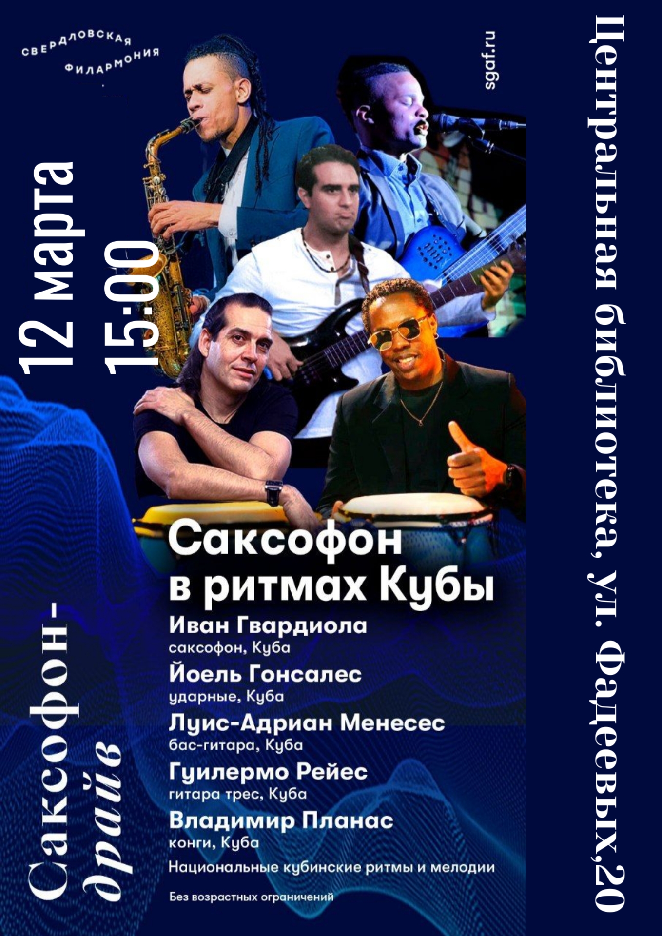 Центральная библиотека приглашает 12 марта 2026 г. в 15.00 на запись концерта «Саксофон в ритмах Кубы».