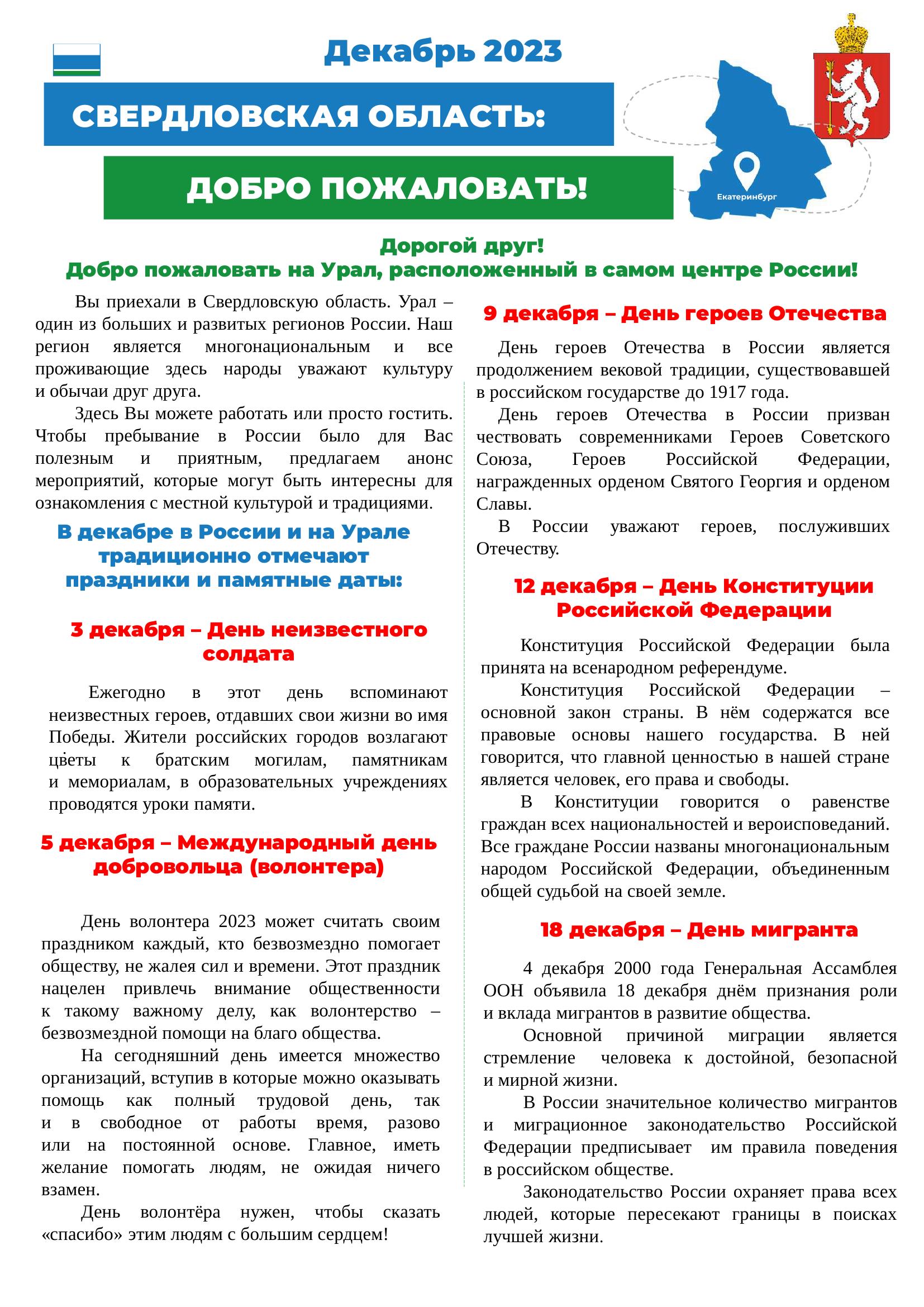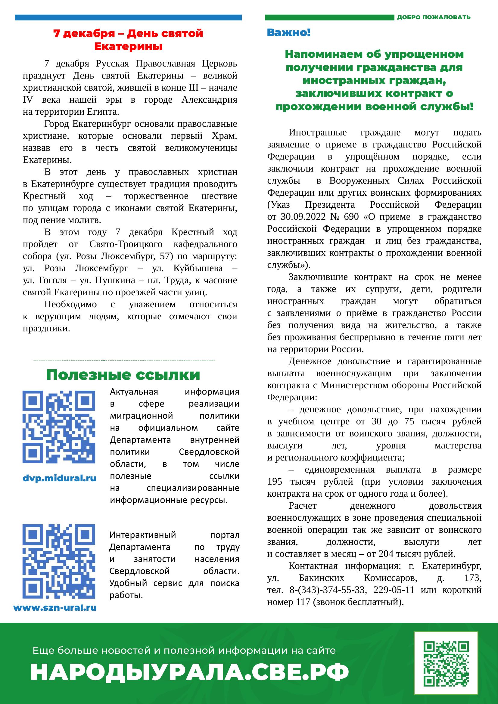 Информационный бюллетень для иностранных граждан на декабрь 2023 года