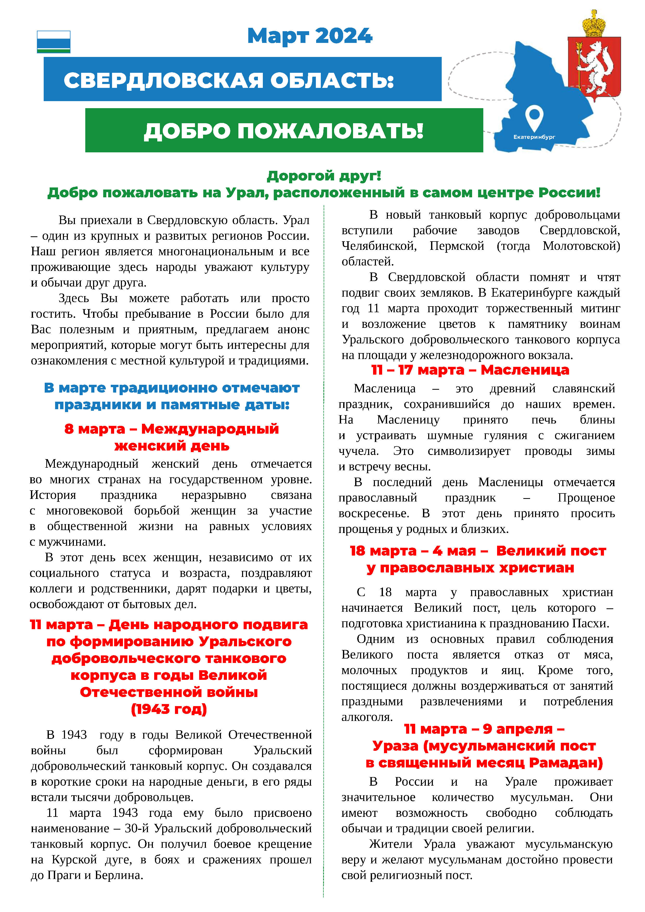 Март 2024 СВЕРДЛОВСКАЯ ОБЛАСТЬ: ДОБРО ПОЖАЛОВАТЬ!