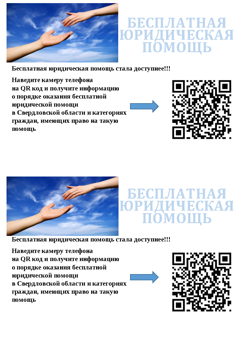 на QR код и получите информацию о порядке оказания бесплатной юридической помощи в Свердловской области и категориях граждан, имеющих право на такую помощь